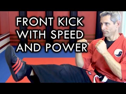 How to Front Kick with Speed and Power - Front Kick - The front kick is usually the first kick you learn how to throw in the martial arts. Here's an exercise to help you throw it faster and stronger! ▻Take my 7-DAY ...